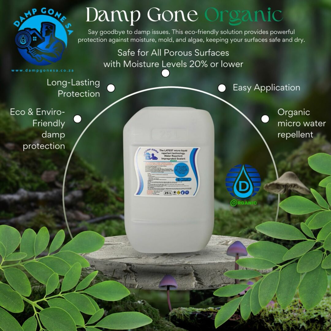 Damp Gone Organic brings you an eco-friendly solution to damp-proofing, using organic technology to prevent moisture penetration on porous surfaces. Perfect for green-conscious homeowners, it safeguards cement, concrete, and plastered walls against damp, mold, and algae without harsh chemicals. Available in 1L, 5L, and 25L options, Damp Gone Organic is ideal for both small touch-ups and large-scale projects. Eliminate severe damp fast